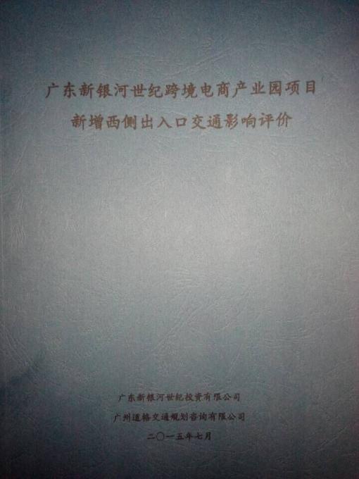 受廣東新銀河世紀(jì)投資有限公司委托,我公司編制的【廣東新銀河世紀(jì)跨境電商產(chǎn)業(yè)園項(xiàng)目新增西側(cè)出入口交通影響評(píng)價(jià)】報(bào)告,于2015年7月通過專家評(píng)審。